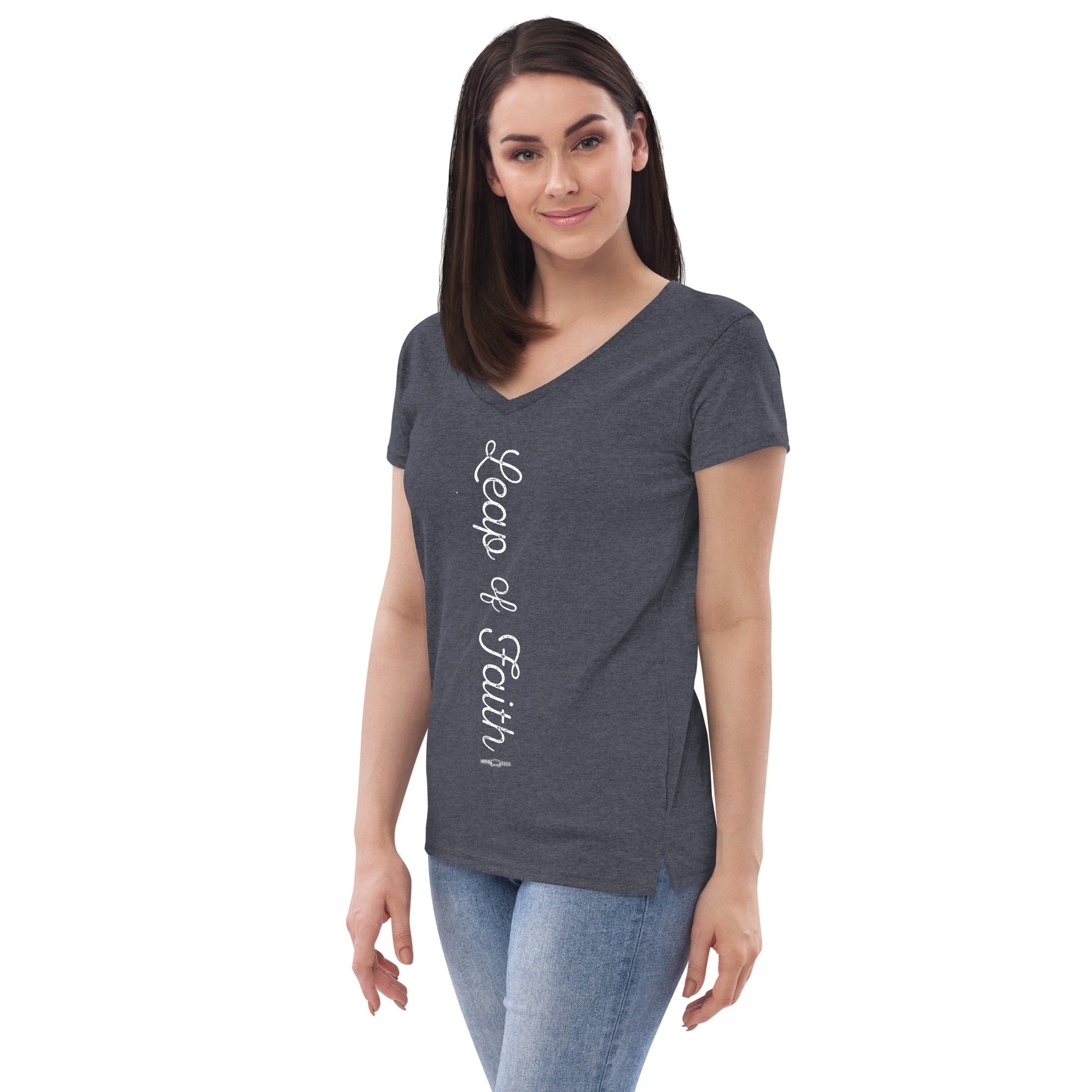 Women’s recycled v-neck t-shirt Leap of Faith by Frog Geeks